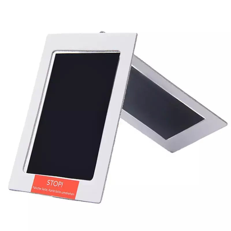 Die einfachste und weitverbreitetste Methode ist das INKLESS Stempelkissen, das du beim großen A in zwei verschiedenen Größen kaufen kannst. Du drückst den Kinderfuß, die Pfote oder die Nase des Hundes auf eine Folie, unter der das Inkpad liegt. Auf der Rückseite drückst du ein Blatt 3-Stern Papier an, und fertig ist das Ganze. Davon machst du ein Foto und lädst es hoch. Hierbei wird der Abdruck am lebendigsten. Bei den anderen Möglichkeiten wird er etwas flacher.
